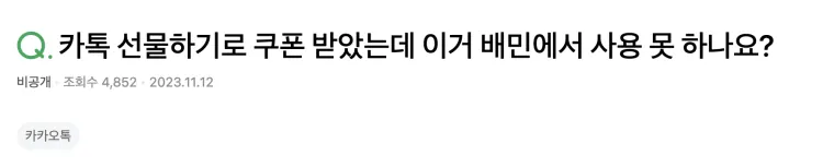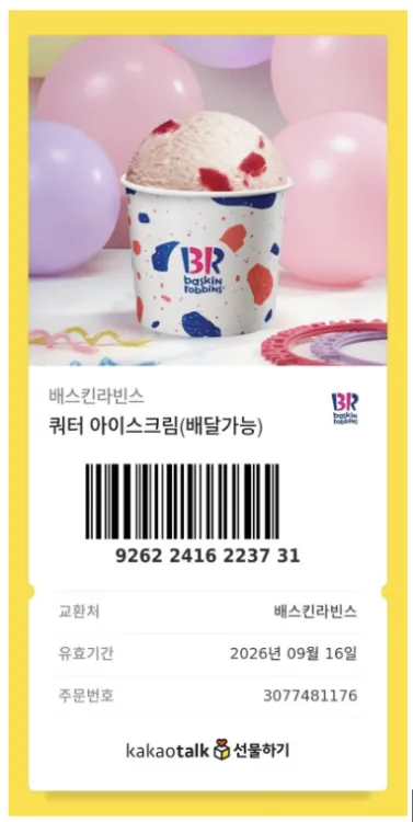 “ 카톡에서 받은 선물, 배민앱에서 주문 가능 ”