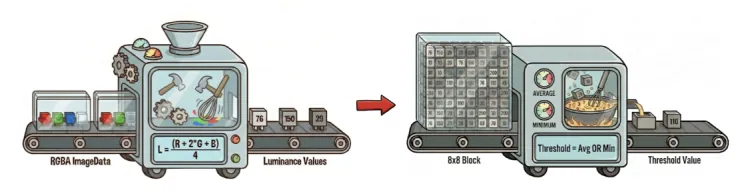 - 이미지를 Canvas에 올려서 각 픽셀의 RGBA 데이터를 담은 1차원 배열인 ImageData를 추출한다.
