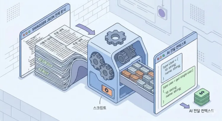이럴 때 고려해 볼 수 있는 방법이 ‘사전 전처리 스크립트’를 활용하는 패턴입니다. AI가 직접 전체 코드를 탐색하도록 두는 대신, 스크립트가 먼저 실행되어 코드 생성에 필요한 메타데이터만 JSON 형태로 요약해 AI에게 전달하는 방식입니다.